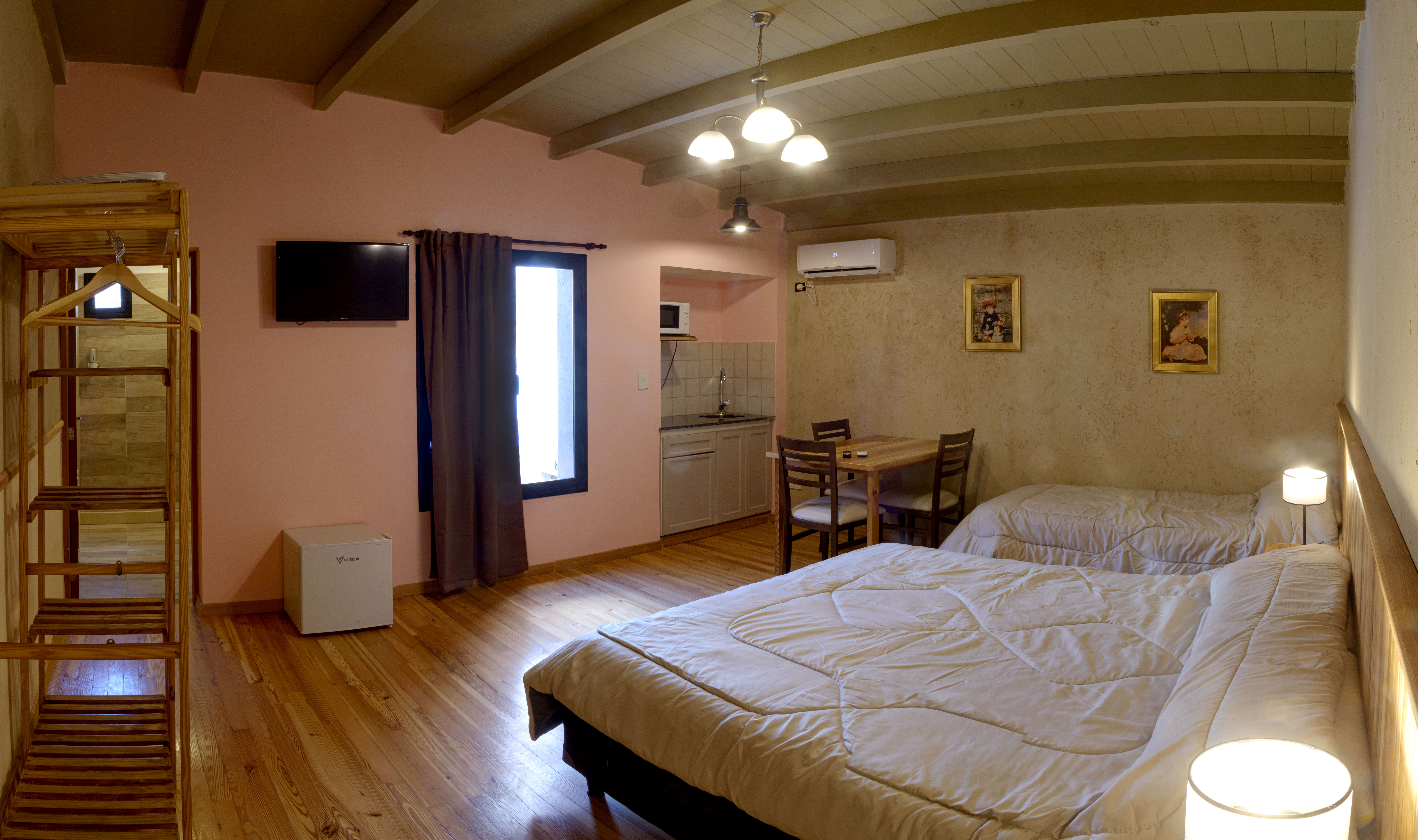 Contamos con departamentos equipados para el alojamiento de familias, contamos con Smart TV, calefacción central, aire acondicionado, vajilla, heladera, pava eléctrica, horno microondas, sommier Simons y almohadas inteligentes.